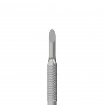 Der Arbeitsteil "Pusher" dient zum Anheben und Zurückschieben der Nagelhaut zur weiteren Entfernung. Der Pusher passt aufgrund einer leichten Biegung, die die Form des Nagels wiederholt, genau auf die Nagelplatte. Das Arbeitsteil "Beil" reinigt die Nagelplatte durch manuelles doppelseitiges...